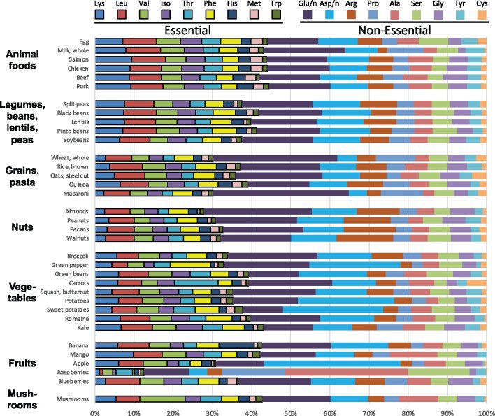 | Food components | Beans and lentils | Meat and poultry |